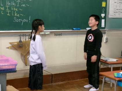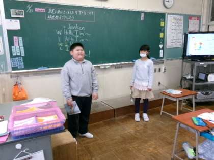 外国語活動では、友達と挨拶をして、好きなものを伝え合いました。上手に言えると、嬉しそうにしていました。