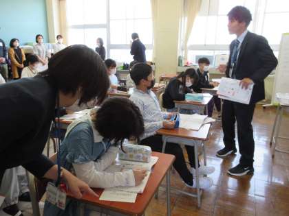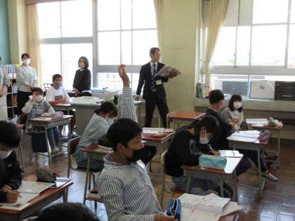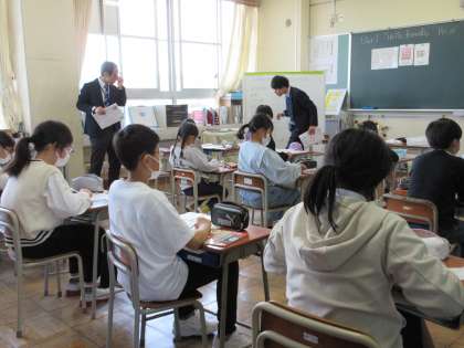 外国語科「Hello,friends」の学習です。先生の問いをよく聞こうとしました。