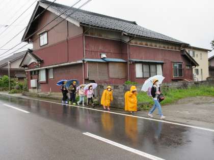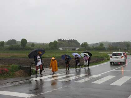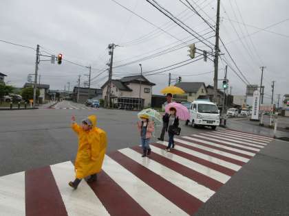 雨の中の登校になりました。