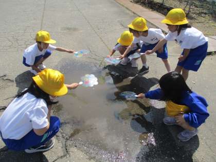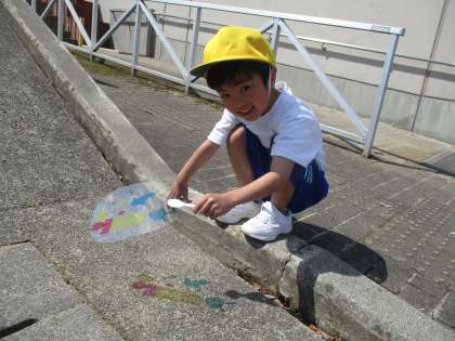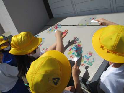 水面に映る影や色の重なりに驚き、大喜びの子供たちでした。
