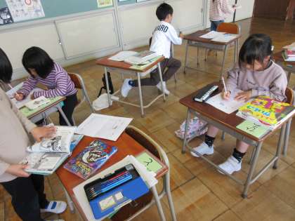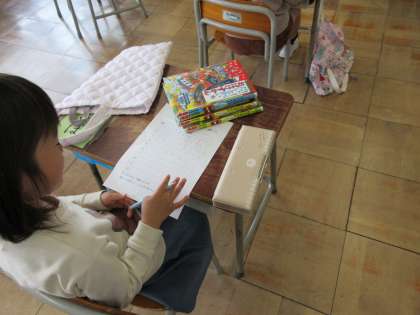 読書貯金カードの書き方を教わりました。たくさんの本と出合いましょう!