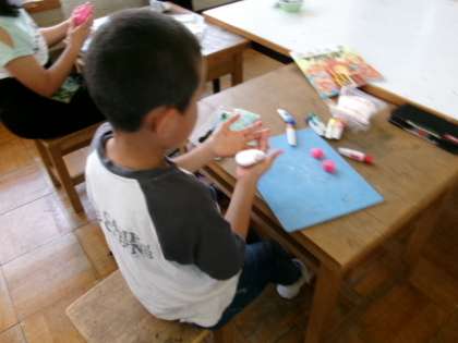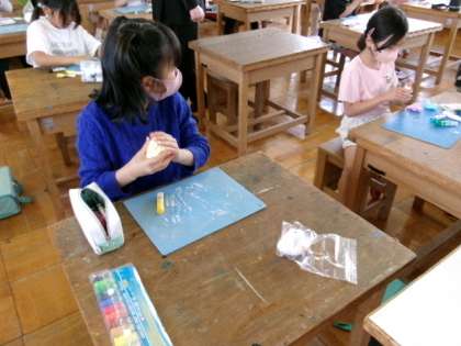 図画工作科では、「元気のおまもり」の学習をしています。元気が出る色や形を思い浮かべながら、紙粘土でおまもりを作っています。どんな作品ができあがるか楽しみです。