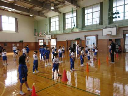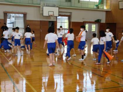 練習を終えたあと、素早く片付けに取り組む6年生の姿がありました。また、体育館を出る際、「ありがとうございました」とおじぎをしていく子供たちの姿も見られました。