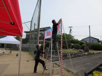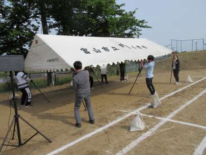 保護者の皆様には、早朝から設営にご協力をいただいております。ありがとうございます。