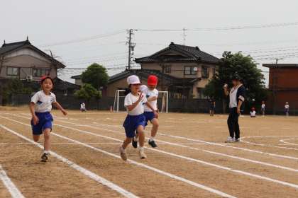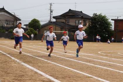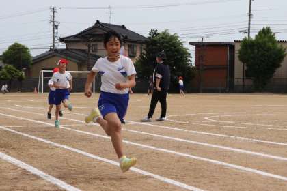 3、4年生の80m走です。全力で80mを駆け抜けました。