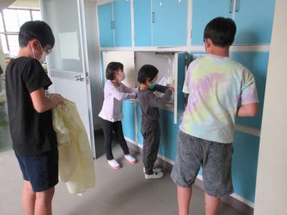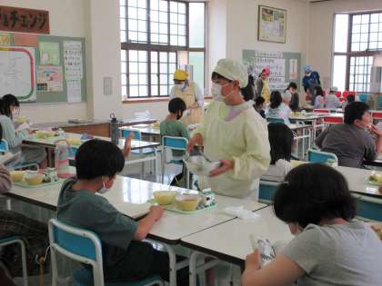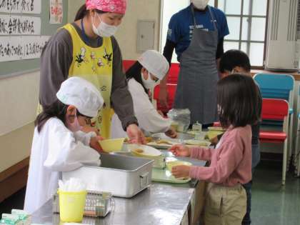 みんなの力を合わせて準備できました。白衣を片付けて、みんなでいただきましょう。