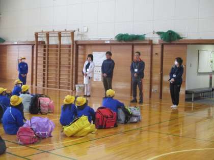 5・6年生の宿泊学習が始まりました。体育館で校長先生のお話や引率の先生方の紹介などの出発式を行いました。これからの活動が楽しみでわくわくしている子供たち。全員元気に富山市子どもの村へと出発していきました。