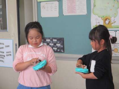 思い思いに粘土をにぎにぎして楽しみました。