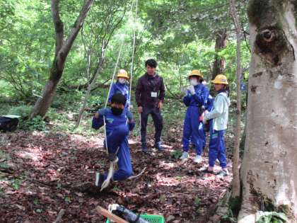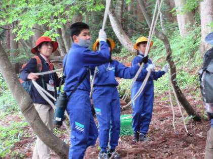 次々にロープを垂らして、結び始めました。