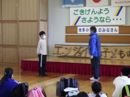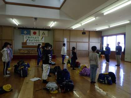 退所式です。雨の後のあったかいお風呂に入れたことから、大変な後には必ずよいことがあると教えていただきました。みんなの賑やかな笑い声が印象的だったと褒めていただきました。