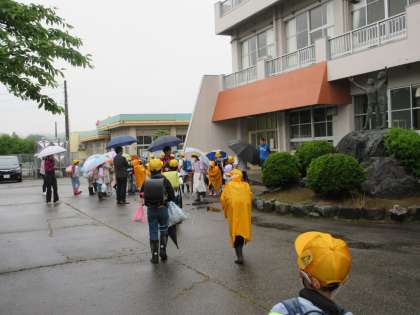 本日は、下校時間の変更にご理解、ご協力をいただき、ありがとうございました。引き続き、川、用水、池等の増水には十分気を付けてください。