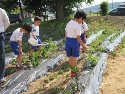 「大きくなあれ」とつぶやきながら、水をやっています。