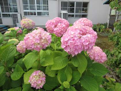 朝のトレーニングが終わって校舎に入ろうとすると、色付いてきた紫陽花が目に入りました。とてもきれいです。