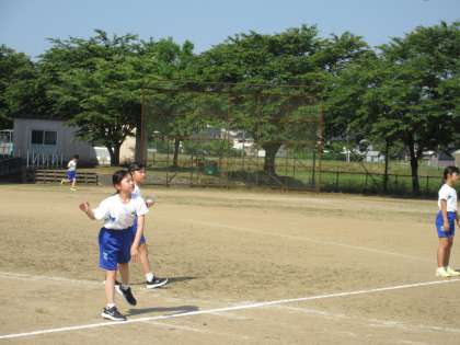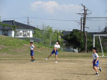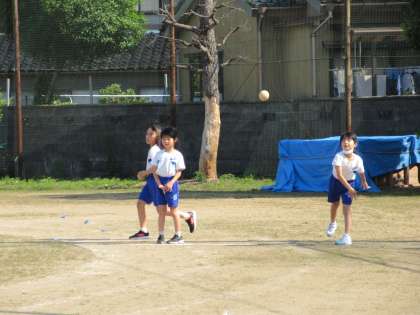 今朝は、ソフトボール投げに挑戦しました。