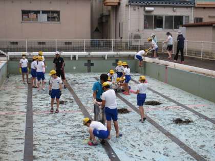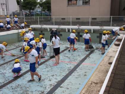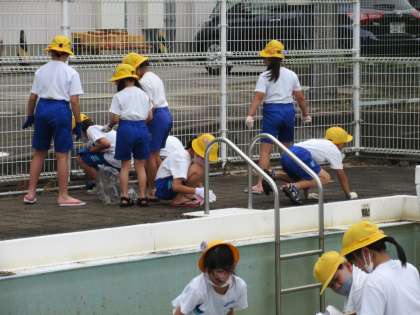 池多っ子全員によるプール清掃が始まりました。