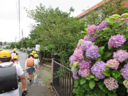 今週も今日が最終日となりました。校庭の紫陽花が美しく色付いています。