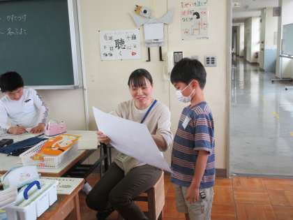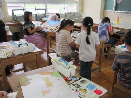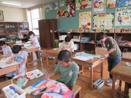 お話や言葉から思い浮かべたり、続きを考えたりして、表現しています。