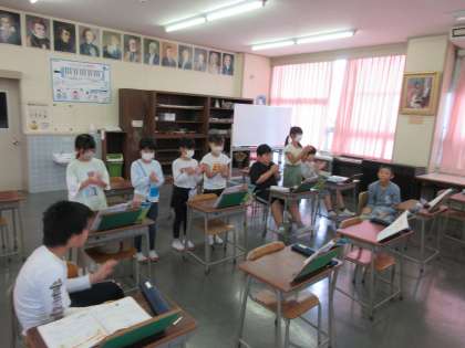 リズムがそろっていて素敵です。また、強弱も意識したリズム打ちになっています。