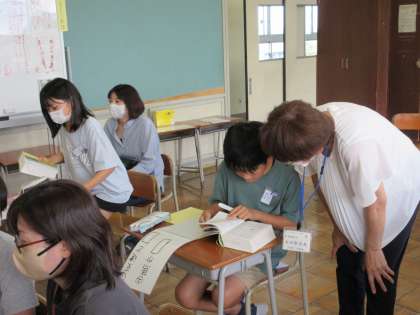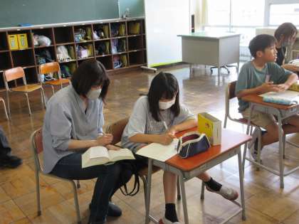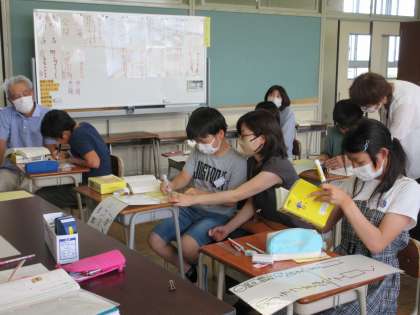 同じ読み方の漢字をたくさん調べています。おうちの皆様にも参加していただきました。