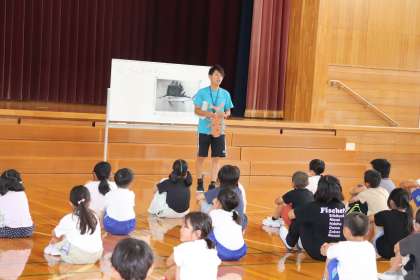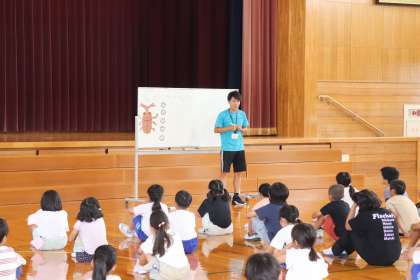 楽しく安全な水泳学習にするために、先生とみんなで守ることを確認しました。キーワードは、「カブトムシ」。