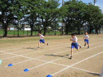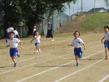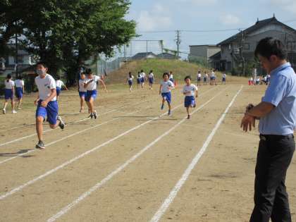 ゴール付近では、先生が「・・・5、6、7、8、9、10」と子供たちに伝えてくださっています。