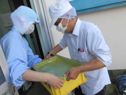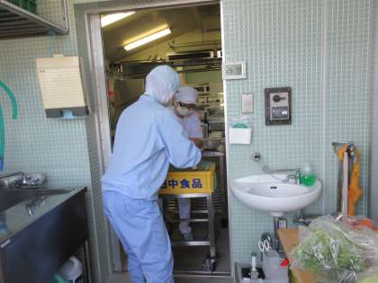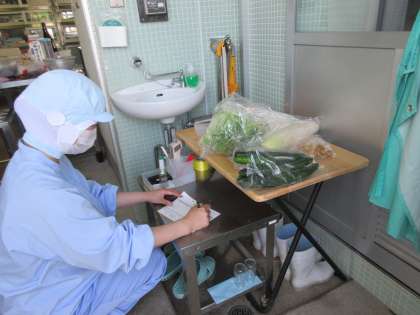 今朝も新鮮な食材が運ばれてきました。豆腐はパックに入っていないもので、水に浮かんでいました。どんな給食になるのでしょうか。