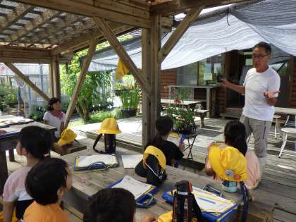 富夢創野さんには、楽しいお話でたくさんのことを教えていただきました。また、暑さ対策のため、時間を繰り上げての探検となりました。ご協力に感謝申し上げます。