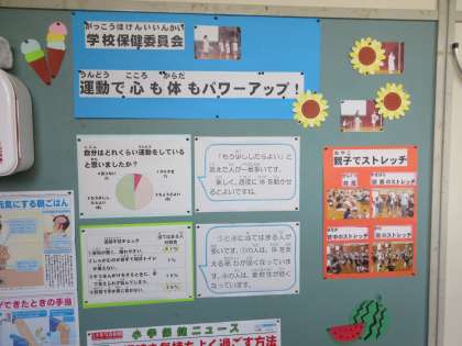 学校保健委員会のことが掲示されています。朝はダンスを楽しみながら、心も体もパワーアップしています。生活の中に、ぜひ運動を取り入れていきましょう!