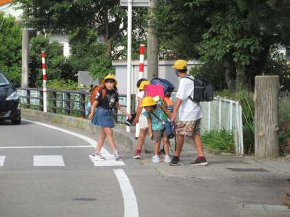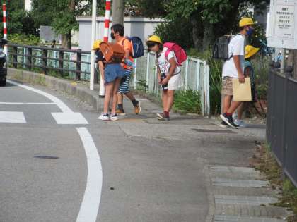停車してくださったドライバーさんに会釈しています。素敵な行動にうれしくなります。