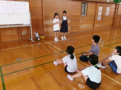1学期最後のお楽しみ会をしました。ドッジボール、お絵かき、おにごっこをしました。みんなで楽しく、思い出に残るようにと目当てを決めて楽しみました。