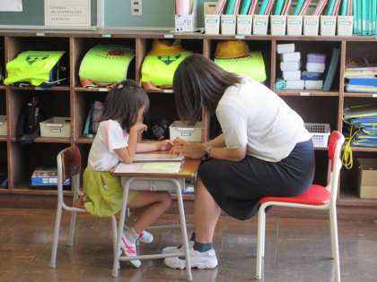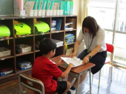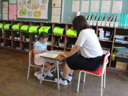 1年生は初めての「あゆみ」です。どきどきしながら先生のお話を聞いていました。