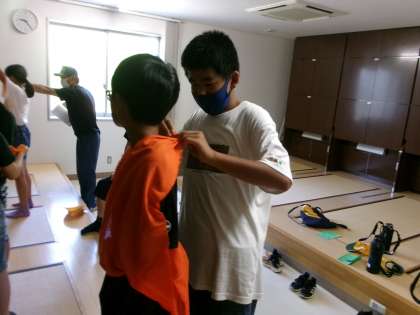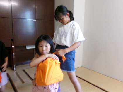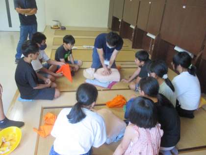 次の救急体験を行いました。腕や頭部をケガした時の対処を学んだり、心肺蘇生法を学んだりしました。