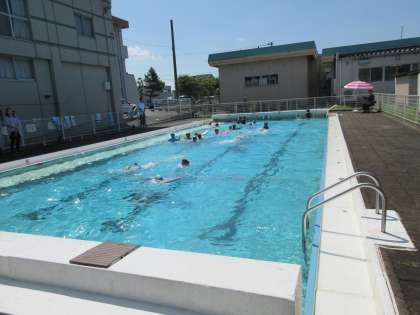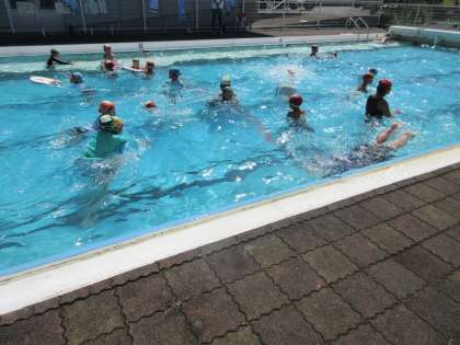本日のプール開放は、健康と安全面を考慮し、1時間に短縮しました。子供たちは「あと○分!」と言いながら楽しんでいました。