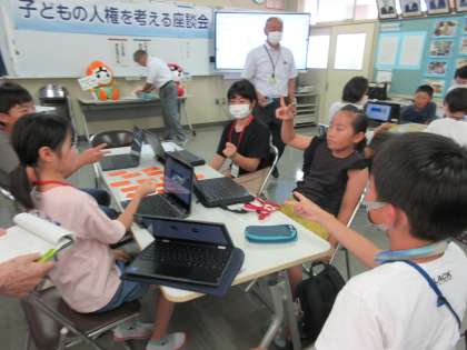 で第6区域の代表の子供たちが呉羽小学校に集いました。一人一人が人権についてじっくりと考える時間をもちました。