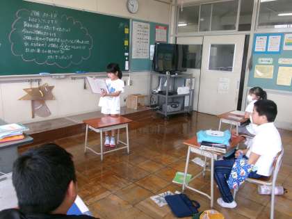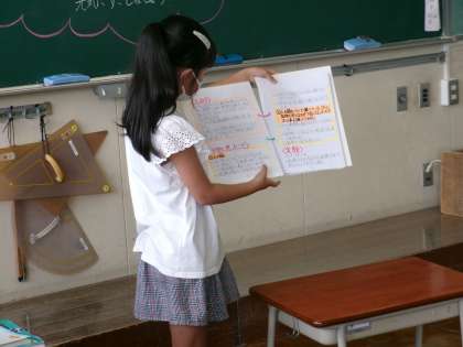 夏休みに取り組んだ自由研究について紹介したり、夏休みの思い出についてのビンゴをしたりしました。