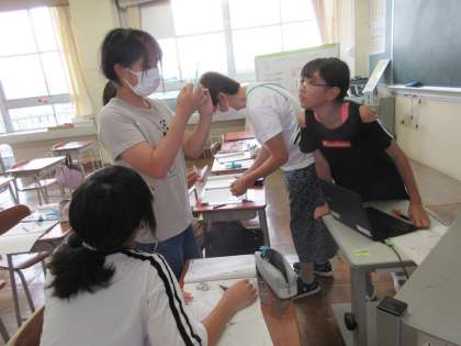 作図の仕方を学んでいます。1mmも間違わないように気を付けているところがすごいです。