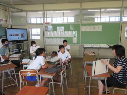 「大切なもの」を伝え合う学習をしています。校長先生も飛び入り参加。「えー」「そうなんだ」という声が聞かれました。