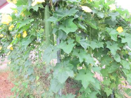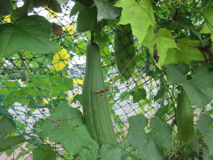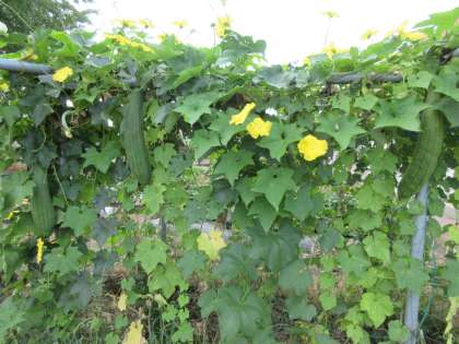 しばらく見ないうちに、ヘチマの実が大きく育っていました。