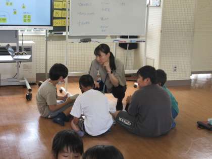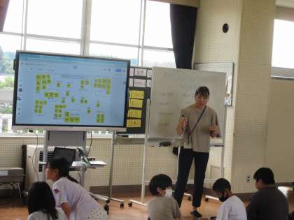 近くの友達と思いを共有しています。