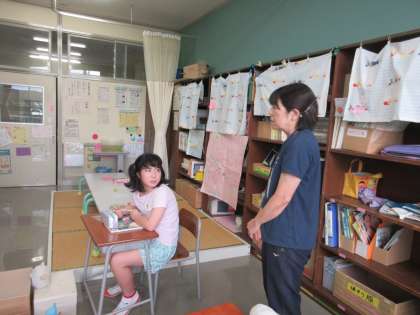 平和について考える動画を視聴した後、不思議に感じたことを先生に質問しています。