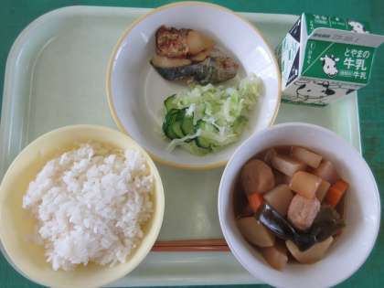 9月25日(月)今日の給食 公開日 2023/09/25 更新日 2023/09/25 池多っ子ゴーゴー 今日のメニューは、ご飯、鰆の西京焼き、刻み和え、炊き合わせ、牛乳でした。それぞれ味がよく染みこんでいて、ご飯によく合いました。