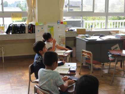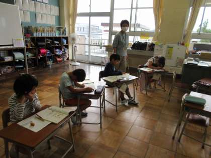 3年生は校外学習中です。2年生は教室でしっかり学習していました。