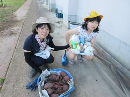 おいしそうないもがたくさん収穫できました。うれしそうです。