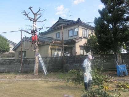 グラウンド周辺では、樹木の剪定や伐採が行われています。区域の用務員さんのチームワークのおかげで、とてもすっきりしました。ありがとうございました。