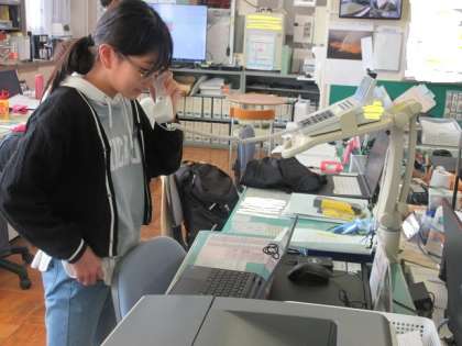 見学の依頼を代表して行っています。用件等を電話でしっかりと伝えることができました。自信がつきましたね。