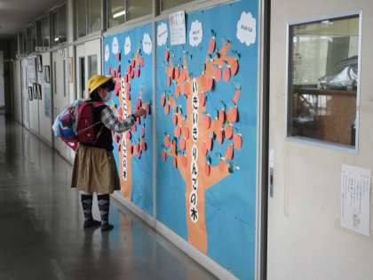 今日も、自分のがんばりや仲間のよさを表現しています。下校前の様子です。