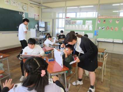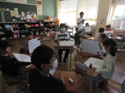 教室でも、以心伝心ゲームに挑戦していました。そろえるのはなかなか難しそうです。