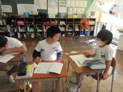 それぞれ問題を一生懸命に解いています。友達に教えたり、教えてもらったりでうれしそうでした。