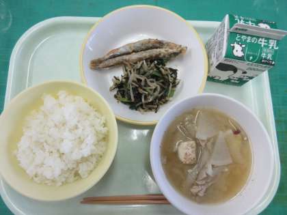 10月20日(金)今日の給食 公開日 2023/10/20 更新日 2023/10/20 池多っ子ゴーゴー 今日のメニューは、ご飯、ししゃもの米粉揚げ、磯和え、さつま汁、牛乳でした。秋の和食のおいしさを味わいました。