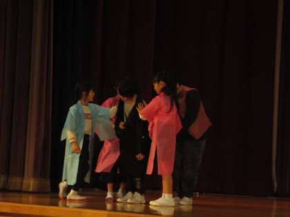 4年生は、国語科で学習した「ごんぎつね」の劇をしました。子供たちは、緊張した様子でしたが、自分にできる精一杯の演技をしていました。ごんの心の変化を伝えることができました。